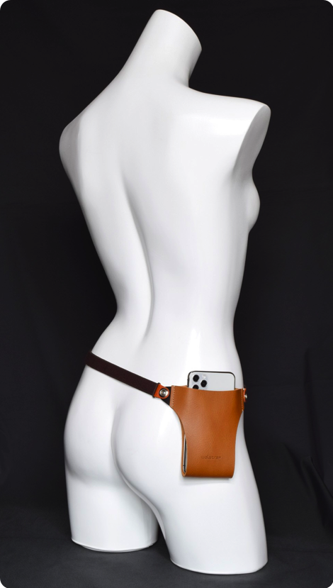 ポケットの中でスマートフォンがかさばり服のラインが崩れることはもうありません。iPhone・スマートフォンをスタイリッシュに身に着ける新しいファッションアイテムの誕生です。